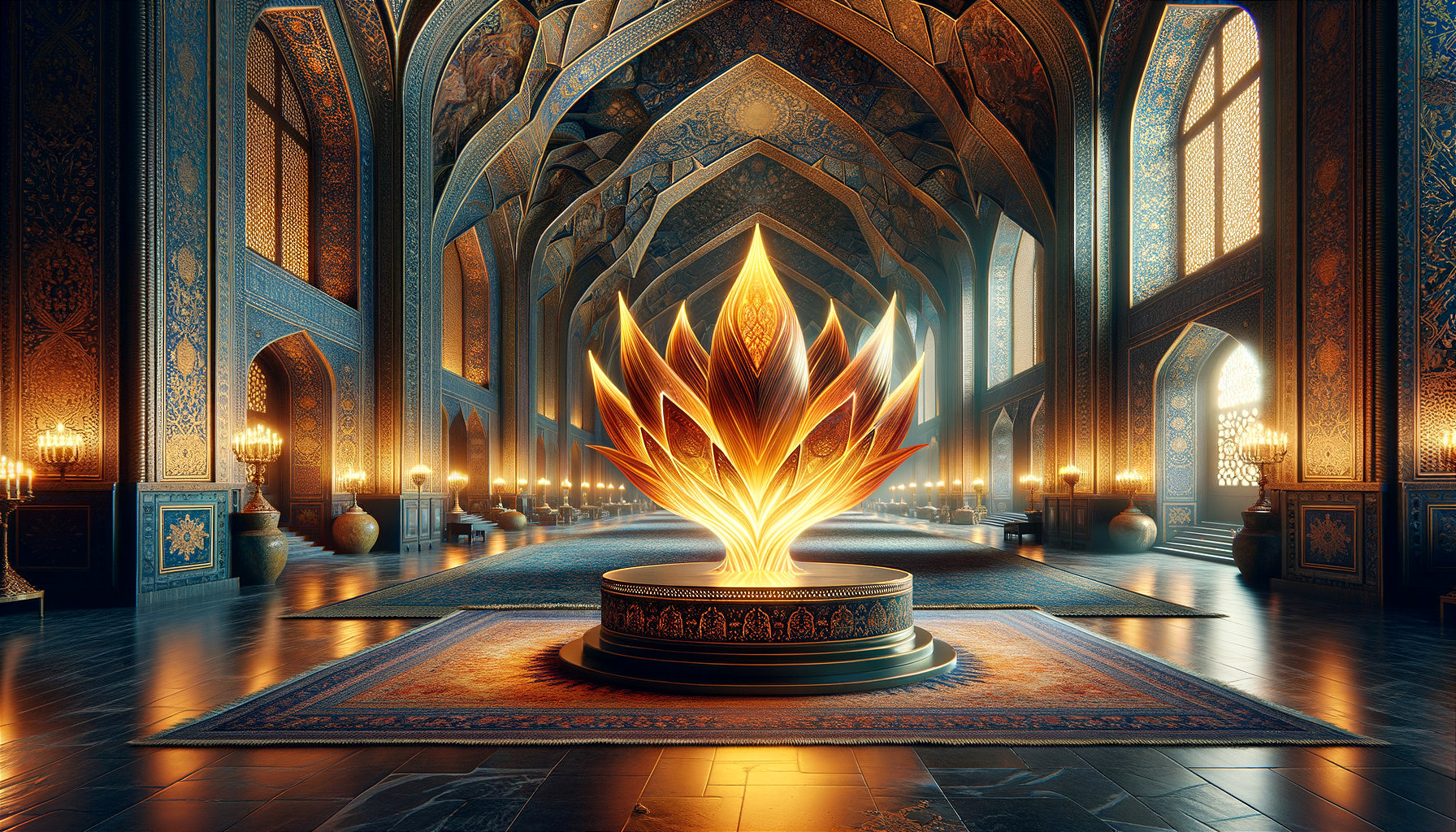 • Prompt: a mysterious bright object standing on a stand in the hall of the royal palace of Persia, 200 AD.