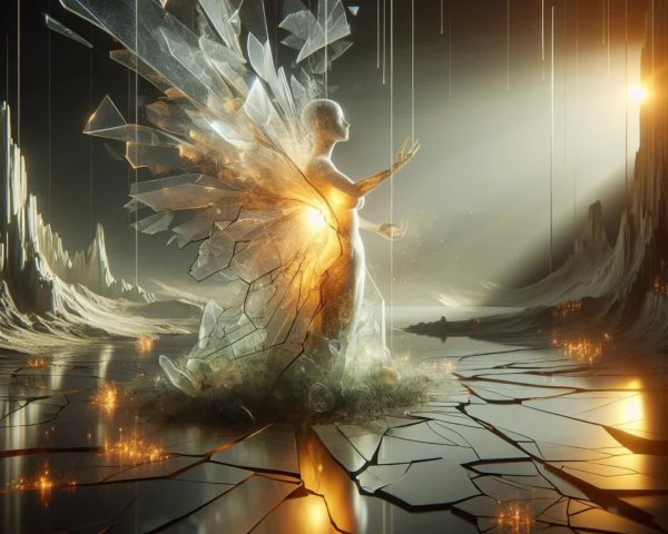 Prompt: A hyperrealistic and painterly surrealist portrait depicting Ophelia resurfacing from the depths of a transparent ocean, her soft porcelain-toned skin emerging through the fluid veil of swirling blue waves and misty textures. The composition captures the delicate transition between water and air, where crashing ripples and suspended droplets weave around her form in intricate visual rhythm. Her entire figure is enveloped by transparent, layered waves, their hues shifting through an array of deep and powdery blues a blend of calm and turbulence rendered in hyper-detailed flowing motion. Lifeless flowers drift across the surface, their faded petals carried gently by the current, adding a sense of quiet melancholy. Faint rays of sunlight penetrate the water’s surface, diffusing through the liquid in subtle gradients of warmth and depth. Her face emerges partially through the shimmering surface, eyes glistening with tears that mirror the light, and soft lips trembling with fragile life, serving as the emotional focal point amid the visual complexity. The interplay of concealment and revelation transforms her visage into a study of contrasts and textures the seen and unseen merging into one continuous flow. The surface of the composition alternates between precise realism and expressive abstraction. Some areas are rendered with microscopic accuracy, while others dissolve into unfinished brushwork and fading pigment, as though the painting itself breathes and hesitates. Crackled, weathered textures echo aged frescoes or ancient parchment, while the wet-on-wet layering of pigment and transparency imbues the image with tactile richness. Lighting is treated with Baroque-inspired chiaroscuro, weaving delicate shadows across her body and emphasizing subtle highlights along the edges of the waves, producing an illusion of depth and quiet motion. Each air bubble and reflected shimmer contributes to the rhythmic pulse of the image, balancing order and spontaneity, beauty and decay.