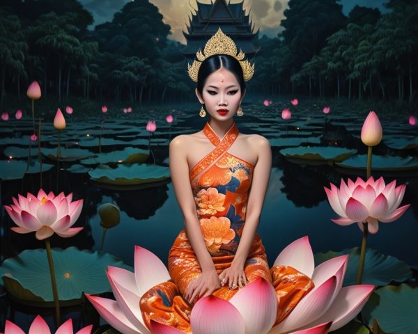 • Prompt: Fall nights - remembering the ecstasy and lotus flowers. Thai traditional dress