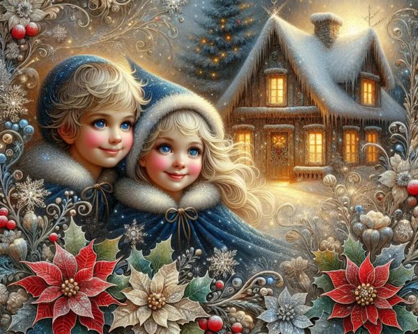 Prompt: A dreamy, cozy Christmas scene featuring a heart-shaped locket resting on an open diary, pages dusted with soft snow-like sparkles. Handwritten notes glow in warm candlelight, accented by watercolor stains in deep reds and pine greens. Gentle golden twinkle lights and hints of holly create a nostalgic, sentimental holiday atmosphere.