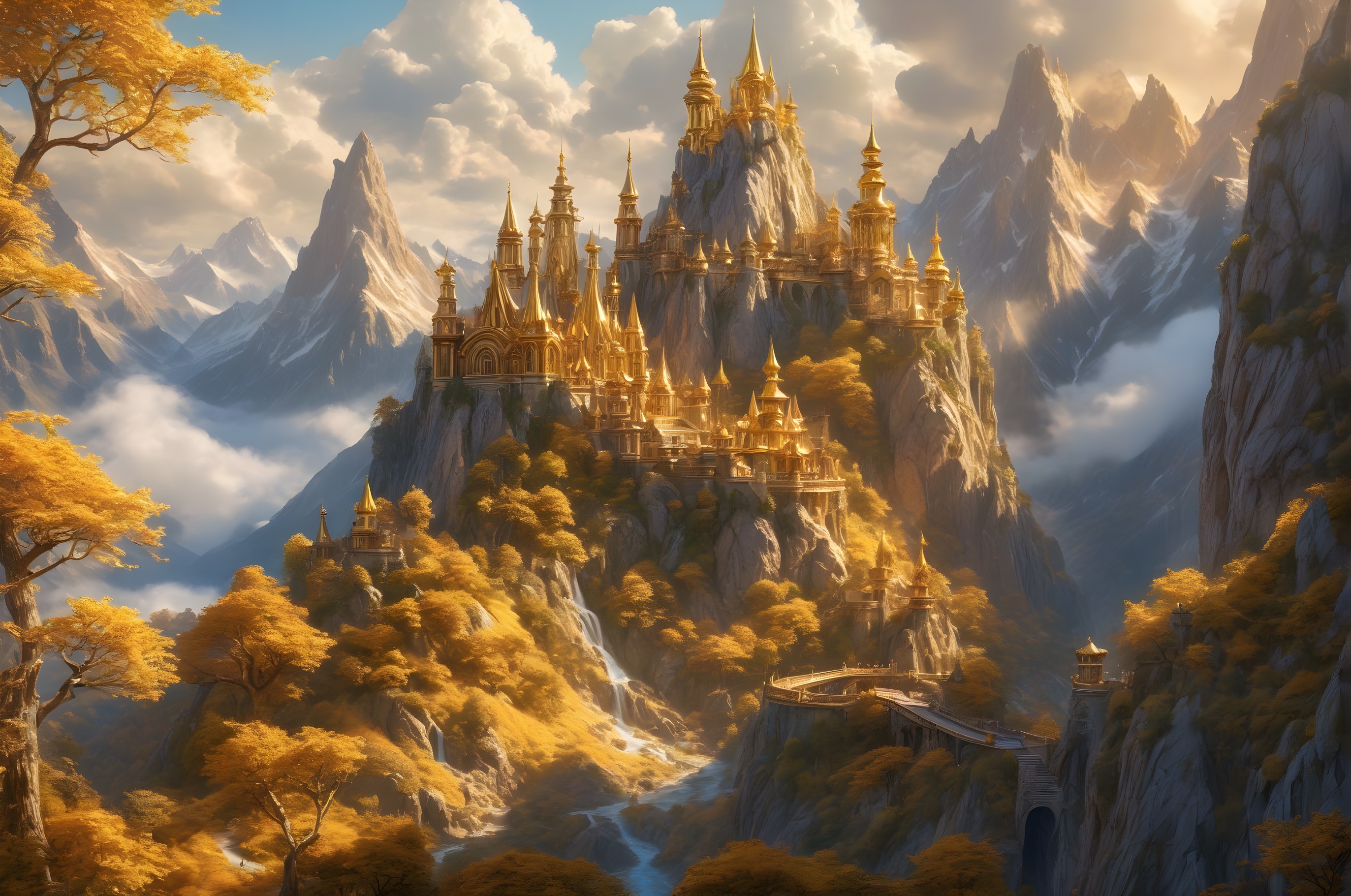 • Prompt: golden mountains, fairytale magic, fantasy travel destination