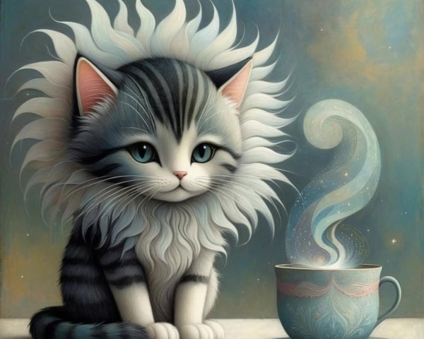 Prompt: Las cuatro estaciones: primavera, verano, otoño e invierno, combinadas, conforman el rostro de un gato. Una obra maestra surrealista y excepcional al estilo de Catrin Welz Stein.