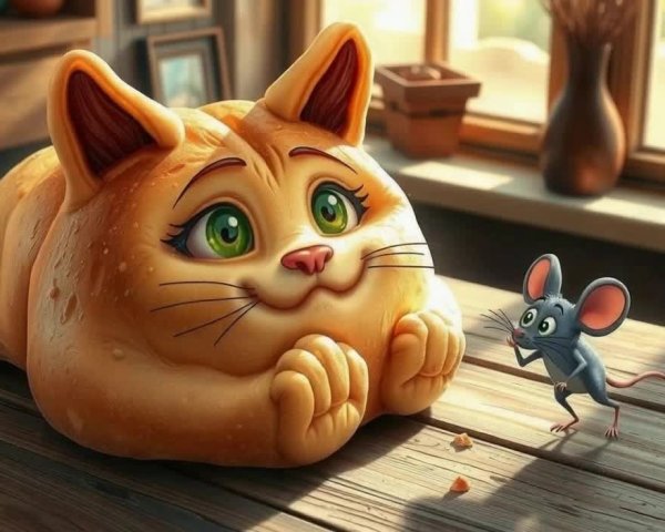 Prompt: A wide-eyed, expressive tabby cat with oversized golden eyes and a whimsical expression, nestled inside an old, oversized leather shoe. The cat peeks curiously out of the shoe, which is weathered, cracked, and slightly misshapen with broken laces. The scene is painted in a textured, expressive brushstroke style, with warm tones and a touch of humour. The background is a weathered wooden floor and faded floral wallpaper, suggesting a forgotten corner of a rustic countryside home. The lighting is soft and golden, enhancing the cat's vivid eyes and the worn texture of the shoe. Whimsical and storybook-like atmosphere.