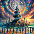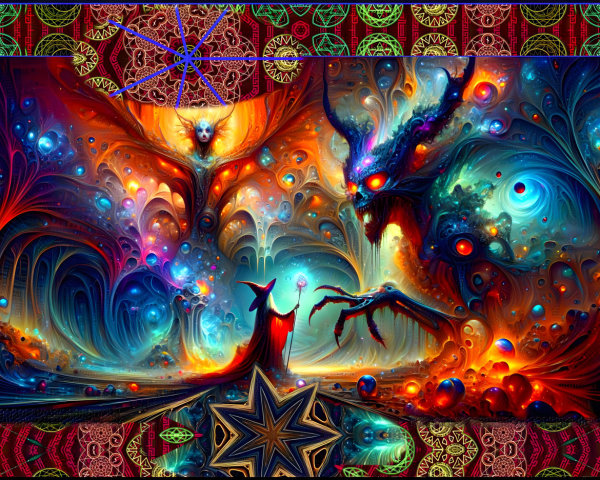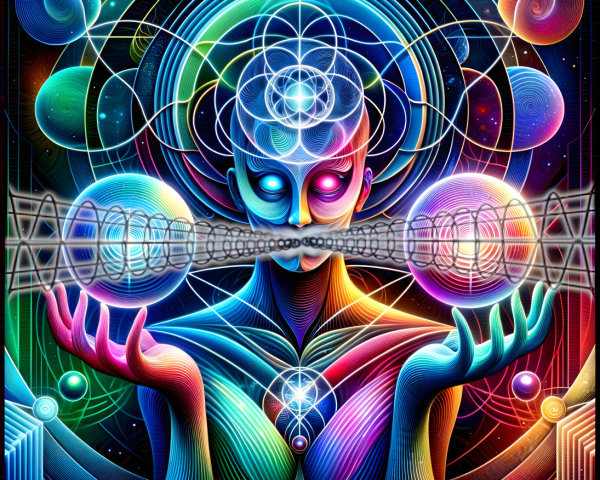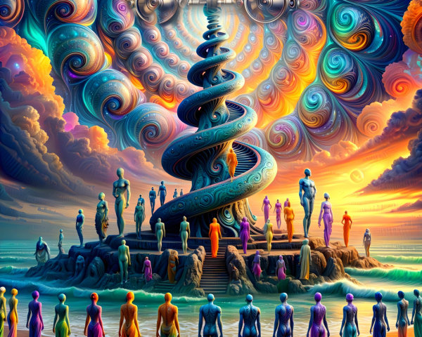 In the style of Dali, Alex Gray, Michael Cheval, surreal, vivid colors, masterpiece, best quality AI art, diffuse lighting, ambient occlusion, Polished, Masterful Surrealism, Photorealistic, unreal engine, 128K, UHD, crisp quality, light reflections, RHADS, atmospheric, 3D texture, 3D shading, ultra 3-dimensional effect, octane render, volumetric lighting, highest quality AI art, classic composition, ultra-realistic, sharp, clear realism, pencil sharp edges, rich texture and color, clear, ultra-real, LSD,