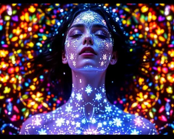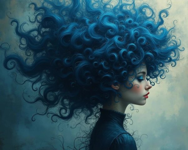 Prompt: ((Masterpiece)). This is a stunning and colorful landscape, created in the patchwork style of Arthur Rackham, Joan Miró, Zdzislaw Beksinski and Jakub Schikaneder(A serene young woman with closed eyes and cascading, luminous blue hair that unfurls in sinuous, flowing curves reminiscent of Art Nouveau ornamentation. She is adorned in a sleek futuristic crimson suit, its contours embellished with delicate, gilded patterns that echo natural forms like vines and blossoms. Ethereal wisps of light spiral around her in graceful arcs, forming a celestial aura that radiates both mystery and cosmic power. The portrait is hyperrealistic yet infused with painterly finesse, evoking the dreamlike elegance of fine art illustration. The atmosphere carries a mystical undertone, blending aesthetic beauty with emotional depth, while the composition emphasizes ornamental harmony, organic rhythm, and an otherworldly elegance characteristic of Art Nouveau), Full Size Image.