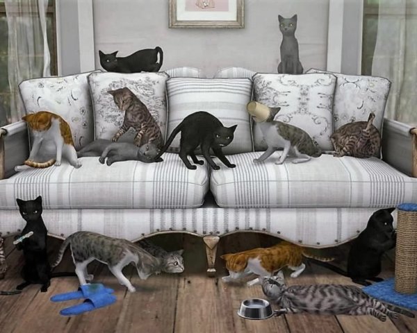 A fluffy orange cat is comfortably lying on a bed, covered with a soft blanket with a Khokhloma pattern. The cat holds a phone in its paws. Its gaze is fixed on the phone screen. Its eyes are slightly open, and a contented smile plays at the corners of its mouth, as if it is immersed in the happiness coming from the screen of its mobile phone. The warm light of a bedside lamp illuminates the room and its surroundings, contrasting with the dark blue night sky outside the window. The windows were decorated with lace curtains. Outside the window, there was a winter cityscape with trees covered in fluffy snow and a bright moon hanging high in the sky, giving the landscape a sense of peace and poetry. V. Zarubin's style. Cartoon. Illustration.