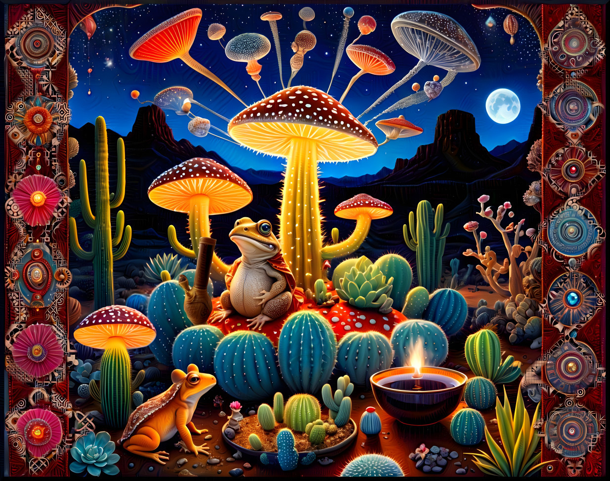 Whimsical Nighttime Desert Scene with Colorful Toad 20w