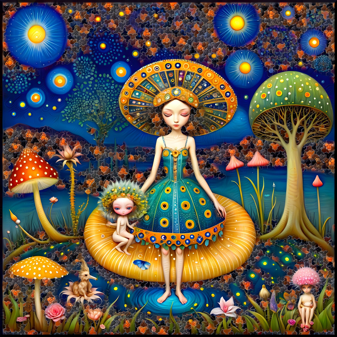 Vibrant Dreamlike Landscape with Oversized Mushrooms 20w
