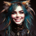 Prompt: A beautiful girl with blue hair, red strands, curly hair. beautiful eyes. stylization,composition,hyperdetalization close-up Prompt true pure magic colourful, high resolution ultra high details denoised... Model Noel Fielding One Photo, emo hair, twiggy lashes, looks like joan jett, big blue eyes, eyes make up, smiling, giggling Muted Steampunk Avians, girl with red & white hair, blue & green eyes, gothic grotesquerie, landscape, graffiti airbrushing techniques, high definition, accent lighting, contrasted with bright paint colors, full body gothic guy, rainbow hair, mirror ball suit, laughing, eyes closed tightly, mimic wrinkles hd real face steampunk goth punk rock realistic nice color hair beautiful British above 30-35 years woman white pale skin smiling giggling mimic wrinkles many feathers cat ears face expressions amazing outfit full portrait Photograph of a beautiful Irish-British young woman with long shaggy hair and pale skin, wearing a black choker necklace and a black googled sunglasses with white peace signs. She has green eyeshadow and dark purple lipstick. She has a small blue jewel on her forehead cat or dragon eye decorated with silver. The background is a blurred curtain. She is smiling and looking directly at the camera. The image has a low resolution and is cropped to a close-up of her face. Muted Steampunk Avians, girl with red & white hair, blue & green eyes, gothic grotesquerie, landscape, graffiti airbrushing techniques, high definition, accent lighting, contrasted with bright paint colors, full body Anna Karenina; A beautiful woman standing in a dark, realistic blue eyes, mixed media, patchwork, quaint, Goth, black and white textures, splashes of red, red lips, by Aubrey Beardsley by Tomasz Setowski by Iwona Lifsches. 3D image Portrait of a cat in a richly decorated masquerade mask. the mask has high detail and elegant style. the design creates an atmosphere of mystery, fantasy, and magic. Goth woman in evil style, violet eyes