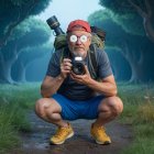 Prompt: A surreal scene featuring a giant hand emerging from the ground, with vibrant orange leaves swirling around it. The hand is painted with lush green moss and intricate roots, seamlessly blending into a colorful autumn landscape. On the hand, a majestic tree with bright orange foliage stands tall, surrounded by a serene forest of evergreen trees. Soft clouds float in the sky, casting a gentle light over the enchanting scene. The overall ambiance is magical and inviting, capturing the essence of nature's beauty and artistic expression.