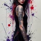 Prompt: (((Masterpiece))) A dynamic ink and watercolor drawing in a scratching, splashing, blotting appeal, irregular stroke, squiggly line, evocative, combined with impasto drip painting, splatter, overspray of color, painted and drawn on black canvas. sensual and very emotional image.