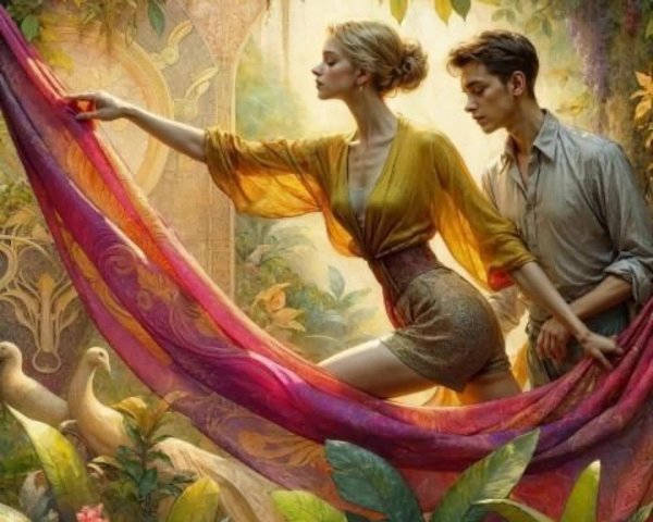 • Prompt: Delicate pastel watercolors, ink brushes, wet-on-wet oil, and watercolor. Two young men, one with red curls and green eyes, in Boho clothes and cowboy boots; the other, a handsome young man, with light brown skin and sparkling dark blue eyes. Their beautiful features are human-like. Both have slender necks and arms, long, graceful hands, and slender, elongated fingers. They are enjoying a quiet moment. They are sitting under a tree, he has his arm around him; they are surrounded by flowers, in front of a landscape. Style by Jean-Baptiste Monge x Dominic Qwek x Pascal Blanche x Neville Page