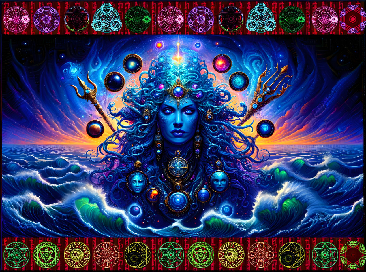 Prompt: A surreal portrait of a woman with a serene expression, embedded within an ethereal floral scene. Her face emerges from a background of soft teal, aqua, and cobalt hues, accented by delicate blooms in shades of blue, green, and white that appear to grow from her hair and merge with her being. Her eyes gaze directly forward with a contemplative look, and her fingers are gently placed before her lips as if to convey a thoughtful silence. The dreamy atmosphere is enhanced by subtle hints of light butterflies flitting around, adding a touch of magical realism. The painting blends elements of nature, femininity, and mystique, evoking a sense of tranquil beauty and otherworldly grace. highly detailed, extremely detailed, intricate, 8k, very attractive, beautiful, high detail, ultra detailed, high definition, Ultra realistic, Unreal Engine 6