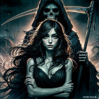 Prompt: Heroine of the seven mythical demon ages. Visual Japanese Manga Artwork and Anime style. Mystical, eerie and mysterious atmosphere. Epic Fantasy Masterpiece.