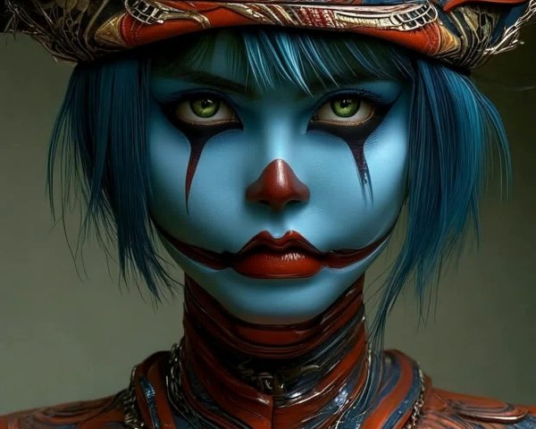 Prompt: A dark misty portrait of a young woman with wide, expressive eyes, wearing a large pink hat. She has dark hair with bangs, slightly tousled, and her hands are raised to her face, covering her mouth partially. She has a natural complexion with pink blush on her cheeks. The background is vibrant and colorful, featuring orange and purple hues with abstract patterns. The image captures a playful and surprised expression with a lively, whimsical atmosphere.