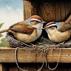 Set her in a vibrant forest, where the background consists of tall, green trees with twisted branches and a luminous, yellow-green glow illuminating the scene. Add whimsical details like small, brightly colored circular ornaments on the trees and delicate flowers interspersed throughout the foliage. To the left, include a charming owl with striking blue and red feathers, perched and gazing curiously at the figure. The overall atmosphere should evoke a sense of enchantment and harmony between the woman and the forest. style by Naoto Hattori , Mark Ryden, Chiara Bautista ,Rodney Matthews,Android Jones,Maggie Taylor,Wojtek Siudmak