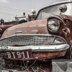 Prompt: An illustration of a rusty robot with a emo girl design. The robot has long black hair and wears a black dress. The robot's body is made of rusty metal and has gears and wires visible. The background is a dimly lit room with a window showing a bright sky.