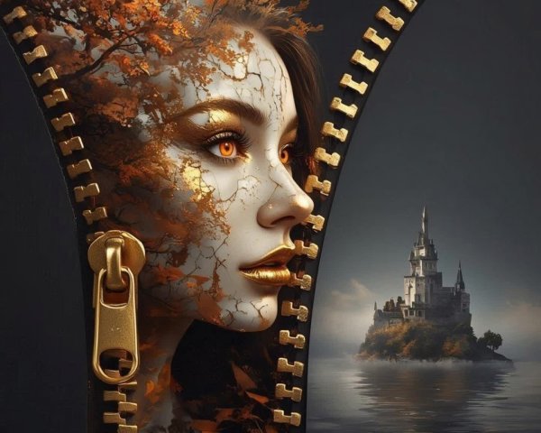 Prompt: A surreal and impossible prospective portrait, where the act of landing is perpetually unfolding. A "Corvus Corax" composed of obsidian shards and polished river stones is caught mid-descent, its wings a mosaic of fragmented focus. From its feathers drips a slow, impossible sap that pools into miniature, perfect landscapes below. The background merges the meticulous, textured layers of Squeak Carnwath, the ethereal, soulful grace of Stasia Burrington, and the hyper-detailed, otherworldly luminosity of Scott Bergey. The scene embodies the notion that true progress is the natural result of staying utterly focused on the process of descent itself.
