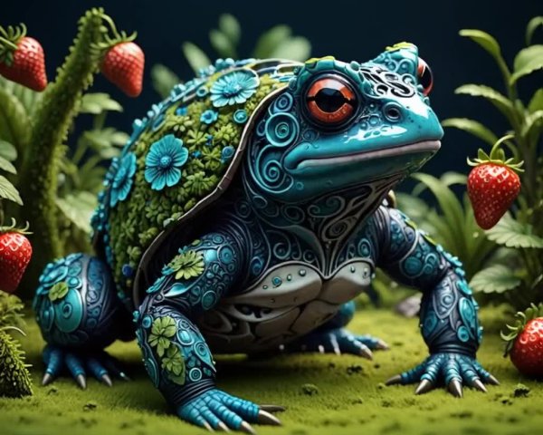 Prompt: In a Forest scene with a touch of the macabre, a colossal, colorful mushroom stands tall in a vibrant forest, with a skeleton head with a crown of Mushroom caps adorned with red roses . The mushroom’s wide, expressive eyes glimmer with mischief, while a large, luminous blue gem, nestled among swirls of candy, captures the light and draws the gaze of curious adventurers. Surrounding this majestic fungi are clusters of smaller mushrooms, each uniquely decorated with rubies and sapphires, creating a playful yet eerie atmosphere that invites exploration. The ground is a patchwork of candy-colored foliage, where licorice vines curl around the stems of these fantastical fungi. The air buzzes with a sense of magic, as if the forest itself is alive, whispering secrets to those brave enough to wander deeper. As the sunlight filters through the treetops, it casts a kaleidoscope of colors across the scene, highlighting the intricate details of the jeweled mushrooms and the whimsical candy accents that adorn them. This enchanting environment, where the playful spirit of Candy meets the striking elegance of Skull, evokes a profound sense of adventure and curiosity, beckoning explorers to uncover the mysteries hidden within this jewel-encrusted, candy-laden paradise, Vivid Colors, HD-Resolution, Digital Art, Psychedelic Art, DMT Art