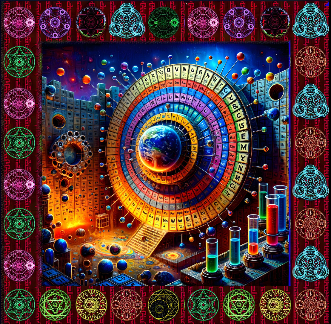 Prompt: An interdimensional stargate, a helical portal of light and energy in an ancient stone masonry temple (with intricate relief carvings) infused with highly advanced alien technology. The portal is a rotating labyrinthine of multidimensional energy- scintillating sacred geometry, sinuous fractals, undulating geometric patterns, and glowing alien inscriptions. From the portal, a UFO emerges shimmering with intricate patterns and flowing energy. A dense pine forest, surrounded by rugged rock formations distorts subtly as the UFO leaves a trail of warped space-time. Ripples of gravity and light create an aberrated anaglyph effect creating a 3D optical illusion. Above, a psychedelic sky unfolds-swirling nebulae, moons, and planets casting radiant light onto the surreal forest-scape. In the style of Jonathan Solter: visionary sci-fi, sacred geometry, alien architecture, radiant spectral gradients, LSD-inspired cosmic surrealism. ArtStation-quality