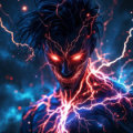 • Prompt: Ethereal woman, intricate demon-like tattoos, black wings, red eyes, facial scars, holding Earth, youthful serenity, cosmic floating, swirling nebulae, twinkling stars, celestial backdrop, awe-inspiring, comforting aura, harmony with cosmos, digital art, detailed fantasy realism, vibrant colors, cosmic lighting.