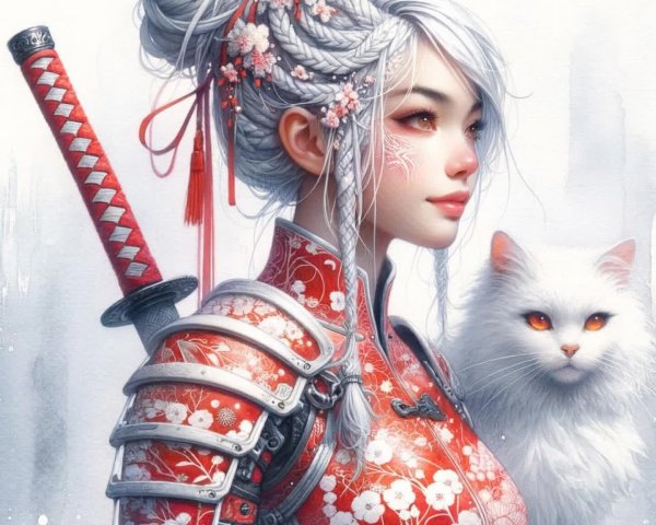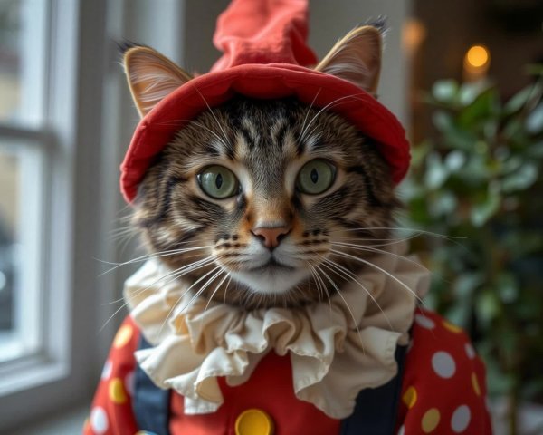 Prompt: A European tricolor cat meticulously grooming itself while perched on a weathered stone bench, its fur—distinct patches of orange, black, and white—catching the soft autumn light. Behind it, a cluster of vibrant blue hydrangeas blooms flamboyantly against crumbling stonework, their intense color contrasting with the bench's muted grey. The landscape framing captures a cobblestone path strewn with fallen leaves in warm ochres, burnt siennas, and deep russets, evoking Renoir's autumnal palette. Gentle dappled sunlight filters through unseen trees, casting soft shadows that enhance the scene's tranquil, painterly quality.