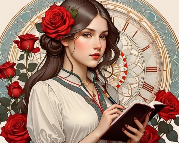 Prompt: *A rebellious female rock singer, radiating powerful, slightly untamed intensity, commands the stage in a dynamic rock pose, actively singing into a microphone. Her expression is fiercely passionate.