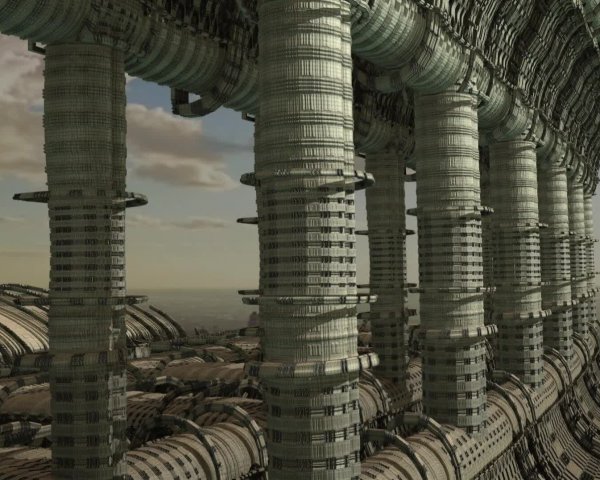 Prompt: A surreal, futuristic portrait of a figure possessed by Giger, with cracked, stone-like skin resembling ancient dry earth. Their long, flowing hair is rendered in fine, metallic strands, almost wire-like. Across their eyes and upper face, a digital glitch visor bursts outward — sharp, layered fragments of rainbow colors (neon orange, pink, purple, cyan, and gold) forming Frank Gehry-like, architectural shards. The vibrant glitch contrasts with the desaturated, broken texture of the skin, creating a fusion of decay and digital transcendence. The lighting is dramatic and cinematic, with warm golden light illuminating the lower face and neck, and cool blue tones surrounding the rest, against a dark, stormy background. Hyper-detailed, 3D, ultra-realistic, digital sculpture style, cinematic atmosphere, masterpiece.