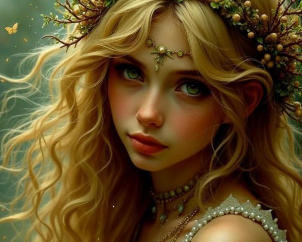 Prompt: Lilith, beautiful, slender, red-haired, with a wonderfully firm body covered in green leaves, in the Garden of Eden, with a snake and an apple. A painting in the style of Botticelli.