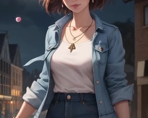 Prompt: Create an enchanting landscape featuring a serene lake at sunset, surrounded by vibrant autumn trees with shades of red and orange. In the foreground, a young woman stands with her back turned, wearing a flowing pastel pink dress that dances in the breeze. She has long, wavy hair that cascades down her back, catching the colors of the sunset. The lake reflects the stunning colors of the sky, and large, colorful flowers in shades of pink and orange bloom along the shoreline. Butterflies flutter in the air, and delicate petals drift down from the trees, adding to the dreamlike quality of the scene. In the background, majestic mountains rise under a starry sky, with a large, luminous moon dominating the scene and subtle celestial elements dotting the sky. The overall atmosphere is magical and tranquil, evoking a sense of wonder and serenity. Dancing on the wind flying without wings, petals cast aloft catch a falling star, baby's breath and butterflies. Let's fly with you until spring, into space and build our own island on the moon frozen dawn in cosmic dust.