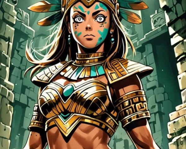 Prompt: A muscular Greek goddess with flowing locks and golden armor, stands proudly atop Mount Olympus, surveying a serene landscape of rolling hills and sparkling rivers, with a serene and wise expression, Turn this image into Concept Art Visual of Street fighter 3 New Generation,but keep it at original source and 100% accuracy