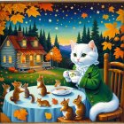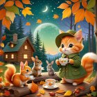 Prompt: A super cute whimsical illustration of a magical teapot as a little shop in the woods and a cute little mouse that sells chocolate and cookies, dressed in vintage beautiful clothes,Christmastime, vintage style, snowflakes extremely beautiful, hyper elaborated, ink drawing, highly detailed, artistic