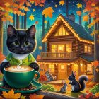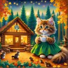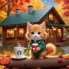 Prompt: A surreal electric guitar where the body is transformed into a vibrant landscape scene. The guitar showcases a picturesque sunset over majestic mountains, a cascading waterfall, and a serene forest. On one side, there is a lively fire, while a small, curious bird perches on a rock formation. Surrounding the guitar are vivid autumn leaves in various shades of red, orange, and yellow, enhancing the magical atmosphere of the scene. The background is softly blurred to focus on the guitar, creating a fantasy-like mood.