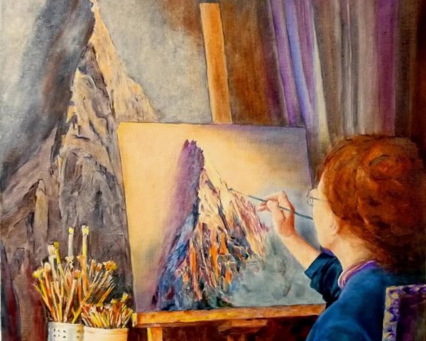 Stile pittorico realistico-onirico, evocativo, con toni di introspezione e leggera tensione emotiva.