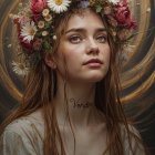 Prompt: The artwork presents a close-up abstract portrait centered on a red Poppy, characterized by layered textures and fragmented elements, harmonizing iridescent color tones. The composition incorporates a distressed background with vertical streaks and metallic accents, evoking an industrial aesthetic and enhancing depth and contrast. This piece establishes a mysterious and evocative atmosphere, skillfully blending modern abstract art with zen art.