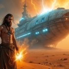 Prompt: A futuristic copper-plated electric locomotive with massive jet turbines from a Boeing airplane mounted on its sides, sleek and powerful, glowing with energy. Surreal, cinematic, hyper-detailed, futuristic concept art.