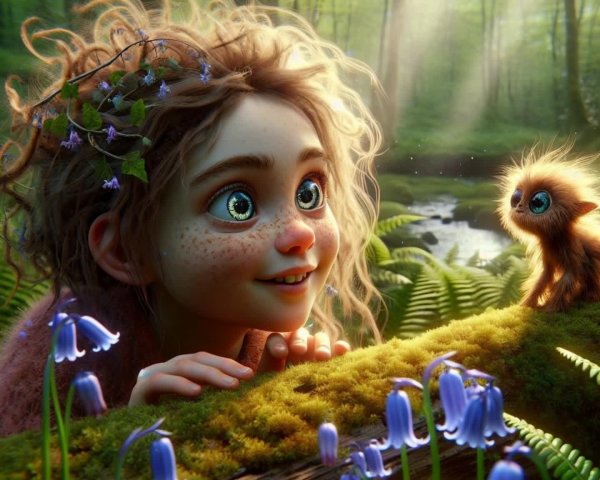 • Prompt: A whimsical scene featuring a giant, weathered violin, the wooden surface cracked open to reveal a magical landscape inside. Emerging from the violin is a lush, vibrant world with a cascading waterfall, dense greenery, and an enchanting castle in the distance under a dramatic sky filled with swirling clouds. In the foreground, a small girl in a flowing white dress stands on an ancient, rolled-up sheet of music, gazing in wonder at the surreal beauty unfolding within the instrument. The colors are rich and warm, blending the rustic charm of the violin with the fantastical elements of the scenery.
