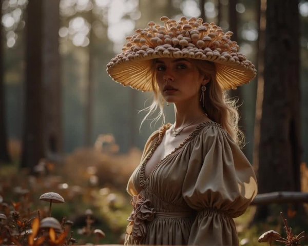 Prompt: A 50 year old woman wearing a long red velvet high neck dress embellished with satin roses. The woman's white face complimented by her short boffant silver hair.