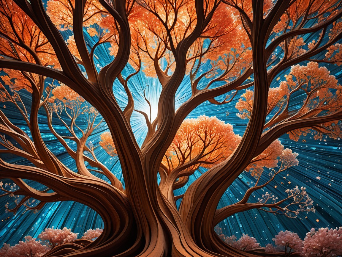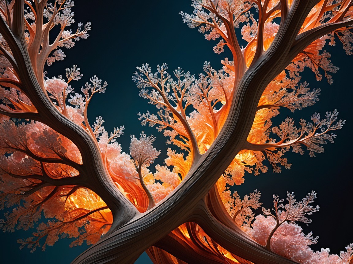 Prompt: “Faceted rib-like curves blend into a Fibonacci tree structure, ending in thick, expressive paint strokes — high detail, dynamic lighting, tactile texture.”