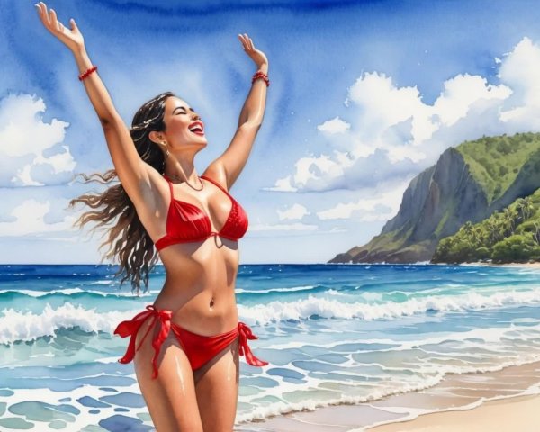 Prompt: Alice in Wonderland plays a red Fender Stratocaster while the White Rabbit watches in a surreal, vibrant landscape influenced by Salvador Dalí. Time is distorted, with melting guitars hanging from twisted trees. Alice should exhibit a tough attitude, dressed in a whimsical outfit, while the White Rabbit, wearing a dapper suit and holding a pocket watch, looks at her in shock. Use bold colors and peculiar visual elements to enhance the dreamlike quality, blending fantastical details with the essence of a bizarre, otherworldly atmosphere reminiscent of the Dada movement, featuring unexpected juxtapositions and playful absurdity.