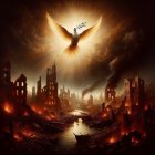 Prompt: mystic Jesus, Christology final Conflict: The verse describes a future confrontation where a beast-like system and its kings will wage war against the Lamb.