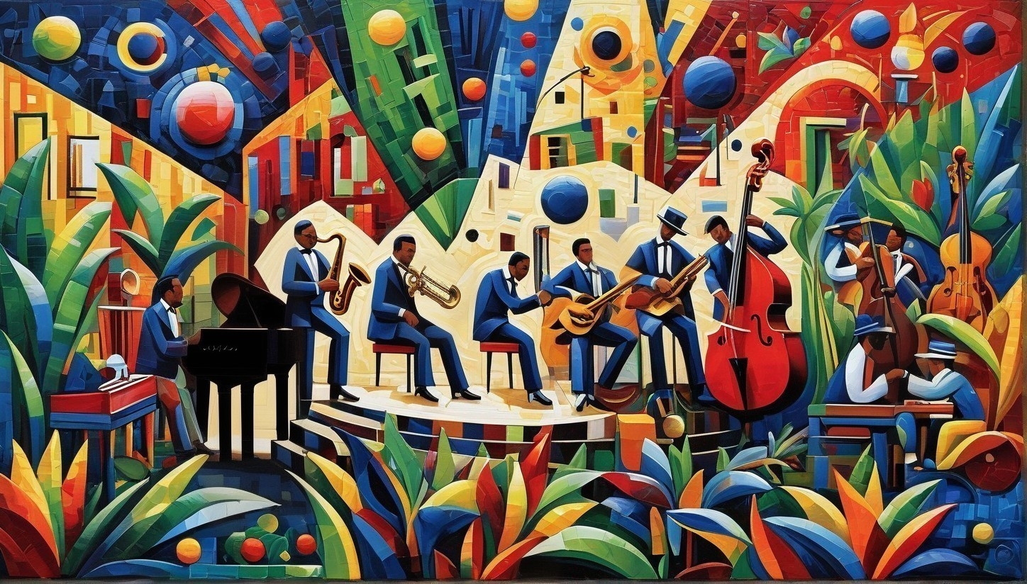 Vibrant Mural of Jazz Band with Colorful Backdrop