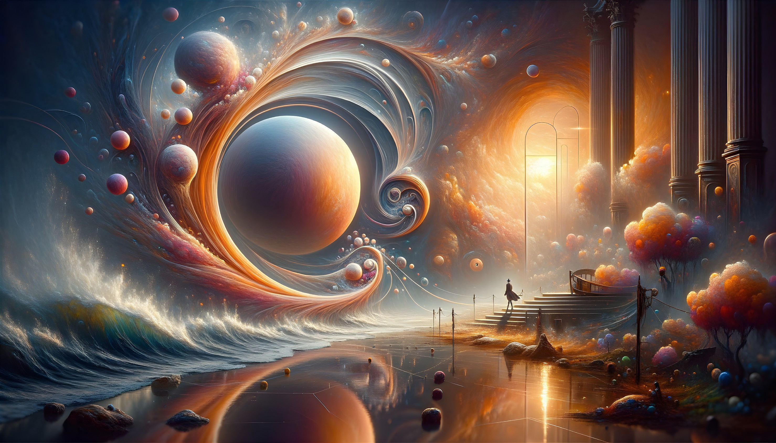 Surreal Landscape with Cosmic Waves and Celestial Elements