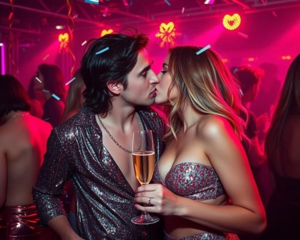 Prompt: High quality professional painting of a couple in love on the beach. She sits in front of him with her blonde flowing hair and fiery red lips. He puts his hand between her legs. Her face expresses complete pleasure from the touch. Gothic romantic oil painting in expressive impasto manner. Blonde with tousled bob haircut and bright scarlet lips sits on a stormy beach at sunset, embraced from behind by a long-haired fair-haired man with gentle green eyes. She wears a flowing white shirt, fluttering in the sea breeze, her face calm but emotionally charged. He presses her to himself, their silhouettes merge with the landscape. The work is mainly monochrome with strong black and white contrasts and deep chiaroscuro lighting. Selective accents of bright red - her lips, scattered scarlet petals. Dense brushwork of a palette knife, emotional surrealism, poetic gothic symbolism and dramatic composition.