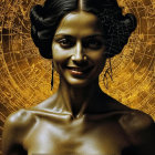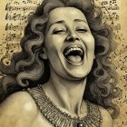Prompt: A highly detailed and intricate 3D portrait in the exotic and provocative style of Olivia De Berardinis, depicting a woman sitting with her arms wrapping her legs, entirely composed of intricately designed film strips skin. Her luscious satin black lips are made of film strips, and her eyes are intense hues of black and white; all meticulously formed from seamlessly merging intricately designed film strips that follow the immaculate shape of her visage, nose, mouth, and eyes. This creates a mask-like masterpiece monochrome beauty, defining her face. Each element reflects light in a mesmerizing dance of monochrome shades and textures. Her long, flowing film strips hair strands sway in a breeze. The scene is rendered with exquisite detail, featuring lifelike textures, monochrome shades gradations, and atmospheric lighting, evoking a blend of Olivia De Berardinis' exotic touch, Thomas Kinkade's shading, Greg Rutkowski's symbolism, and Alphonse Mucha's lines. The 3D backdrop consists of intricately designed movie reels with intricately designed textures against a black and grey shaded background, accented with white curving lines.