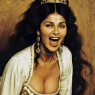 Prompt: Create a black and white portrait of a person with dark skin, wearing an elaborate, translucent veil adorned with delicate lace flowers. The subject's eyes are striking and expressive, conveying depth and emotion. The background features a subtle floral pattern, enhancing the overall composition. The lighting should create a dramatic contrast, emphasizing the texture of the veil and the subject's features. The mood is ethereal and introspective, capturing a moment of quiet reflection.