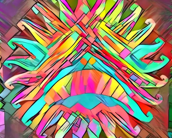 Prompt: an abstract oil painting in bright colors of a line of cattails in autumn in front of a marsh with channels of blue water, and bright autumn trees in the distance, and the sun casting long blue shadows, in the style of Camille Pissarro, Picasso, Gustav Klimt, Odilon Redon