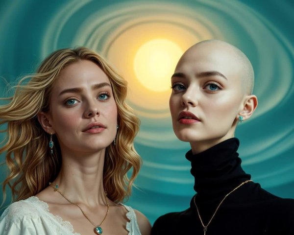 Young Woman and Hyper-Realistic Alien in Artwork