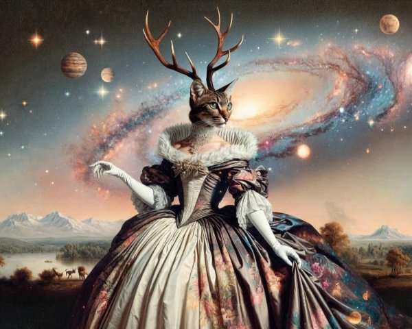 Prompt: Anna Nicole Smith big eyes with antlers and birds & animals in harmony deep dreamscape, Salvador Dali collaboration, Picasso's integrated flowing composition, colorized immersive and balanced by many bright colorful details, Disney