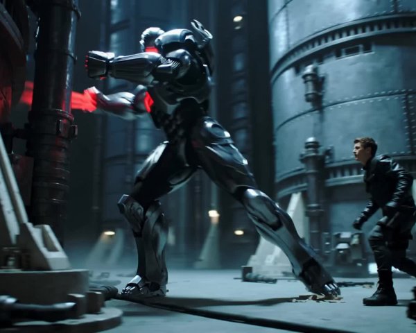 Futuristic Scene with Humanoid Robot and Advanced Technology